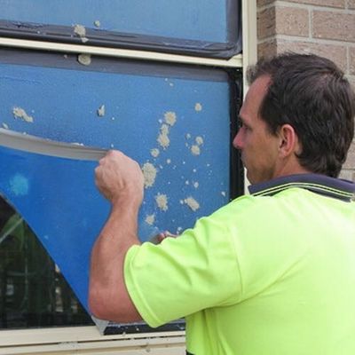 Proteja el vidrio de la ventana, el vidrio, el frente del espejo y los paneles de cristal durante la construcción, instalación, pintura, uso del estuco. superficies.